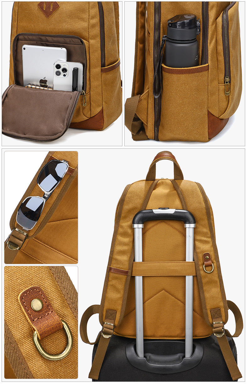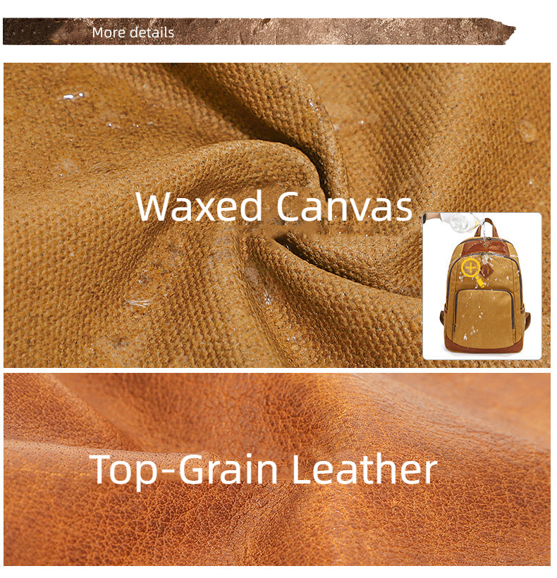 Plongez dans le charme rustique des accents de cuir de première qualité, parfaitement intégrés à une toile cirée durable, créant un sac à dos qui est autant une déclaration de mode qu'un accessoire pratique.