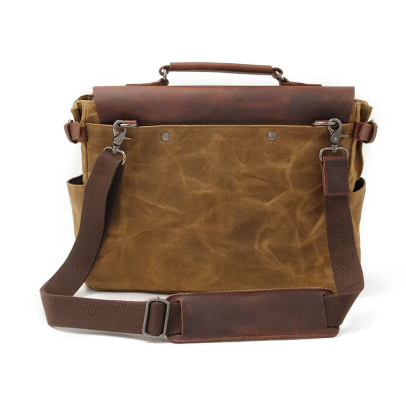 ADJUSTABLE, PADDED SHOULDER STRAP; …Ensures Comfort When Carrying Heavy Or Bulky Items - Grab Handle And Key Hook Makes For Easy Access When On The Go. "MATERIAL: - CANVAS BAG with LEATHER FLAP Dimensions in Inches: Length 15", Width 4", Height 11" inches